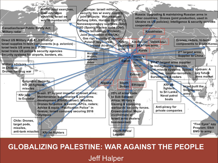 A leading figure in the Israeli peace movement, co-founder of the Israeli Committee Against House Demolitions (ICAHD), noted scholar, educator and prolific author, Halper, starts off by posing the question: “How does Israel get away with it?” He says the standard assumptions- the Israeli lobby, etc. “didn’t do it for him”. What he found exposes a hidden world of military/security relationships. Technology and systems of surveillance and population control that Israel peddles to global ruling elites for their militaries, corporations, security agencies, and police forces in order to make itself essential to the global capitalist security state system as everyday life becomes evermore militarized.
