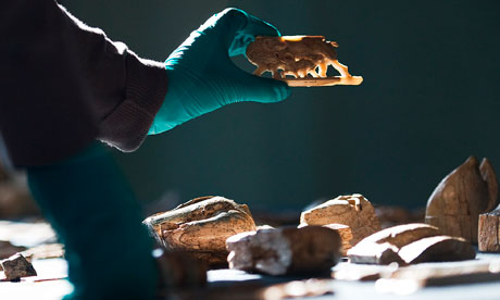Pieces of carved ivory from ancient Assyria. Photograph: Oli Scarff/Getty Images