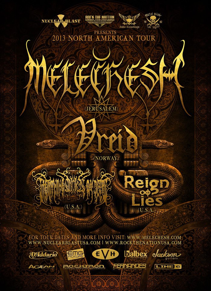 Melechesh is an Assyrian black metal band that originated in Jerusalem. Ashmedi started the band as a solo project in 1993. In the following year, guitarist Moloch and drummer Lord Curse were added to the line-up. The band’s goal was to create a type of black metal incorporating extensive Middle Eastern influences mainly based on Assyrian (Mesopotamian) and occult themes (both musically and lyrically); the band invented the title "Assyrian metal" to best describe their type of metal. (Wikipedia, April 2013)