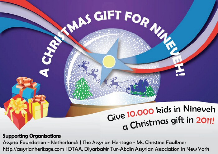 Just like the previous year, we will surprise the kids in the province of Nineveh in Northern Iraq (Assyria) on Christmas. The past years we received donations from all over the world to support this event. The kids in this war-torn country experienced an unforgettable evening when Santa Claus appeared at their houses with a bag full of Christmas gifts. The program was created by Firas Jatou, President of the Assyrian Academic Society, back in 2004 to provide gifts for the children in Nineveh in northern Iraq.