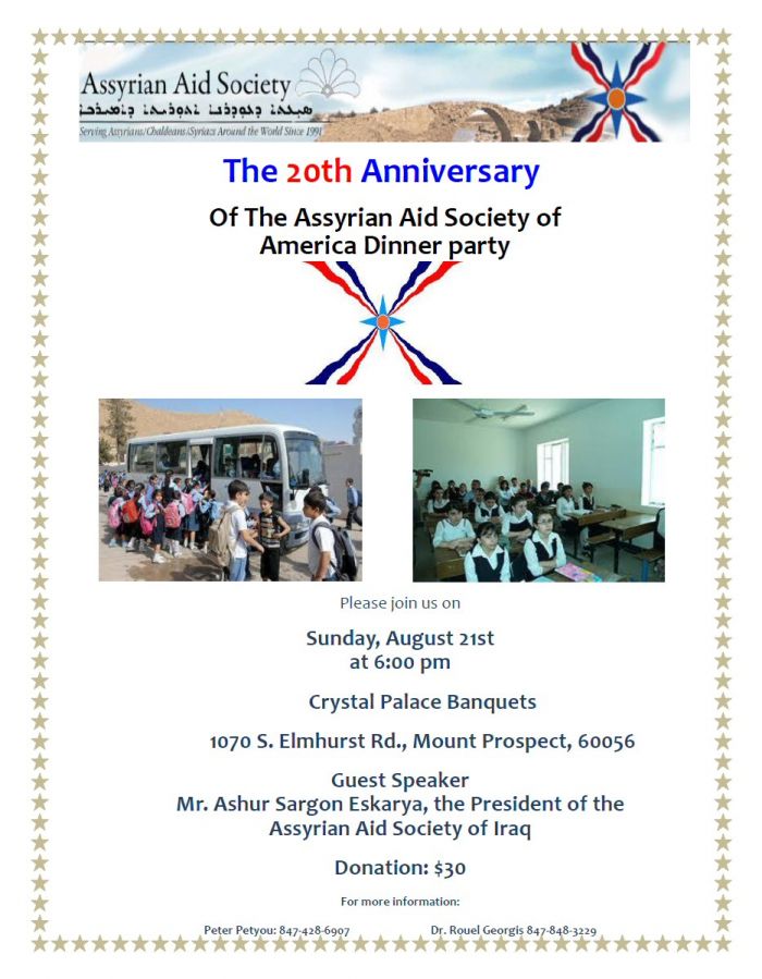 USA, Chicago: Assyrian Aid Society 20th Anniversary Dinner Party (PDF flyer)