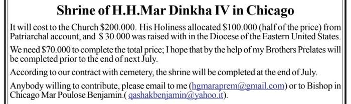 This mega site has cost the Assyrian Church of the East (ACOE) and the Assyrian people $200,000 so far. Out of this total, $100,000 came from the personal patriarchal account and $30,000 was collected from the Eastern Diocese of the church.(7) The Church Committee in Chicago had sent letters at the time to other parishes throughout the United States requesting donations to secure the remaining $70,000. This was taking place at the same time as the Assyrian refugees from Mosul and the Nineveh Plains had fled the wrath of the Islamic group ISIS and were flooding refugee camps and sites all over northern Iraq. Furthermore, the diocese in California was about four and a half million dollars in debt. By the way, more recently and after the passing of Mar Dinkha, the California diocese had sold the priest home in San Francisco and the Church building in Seattle and raised more than two million dollars to pay down that huge debt.