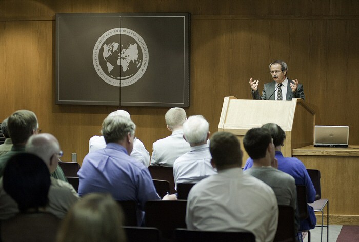 Herman Teule, Chair of Eastern Christianity at Radboud University in Nijmegen, Netherlands, speaks at a lecture held at the Herald R. Clark Building on Wednesday. Photo: BYU University