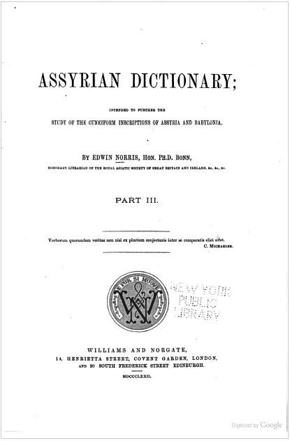 Assyrian Dictionary: Intended to Further the Study of the Cuneiform Inscription of Assyria and Babylonia