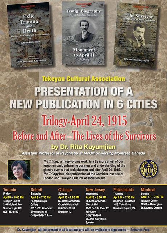 The Trilogy, a three-volume work, is a treasure chest of our forgotten past, enhancing our view and understanding of the ghastly events that took place on and after April 24, 1915. The Trilogy is a joint publication of the Gomidas Institute of London and Tekeyan Cultural Association, Inc.