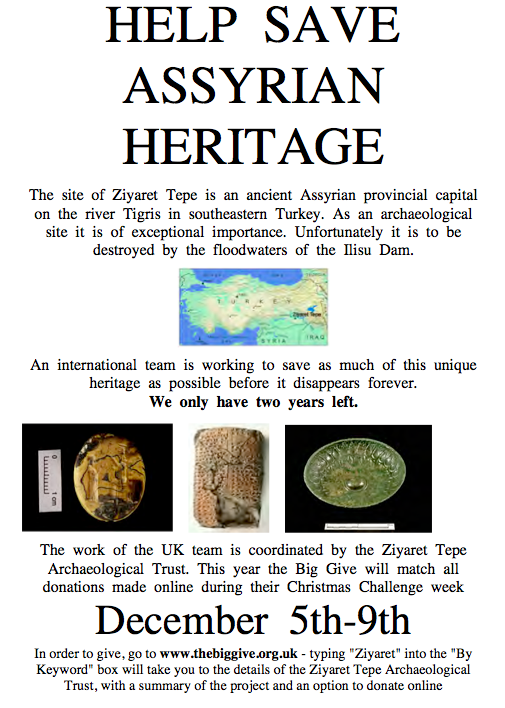 The work of the Cambridge University team is coordinated by the Ziyaret Tepe Archaeological Trust, a registered charity (No.1133366). The Big Give, the week December 5th-9th, The Big Give, will double all donations made online via their website to the Ziyaret Tepe Archaeological Trust.