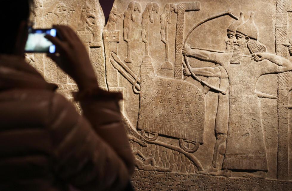 A visitor photographs the wall relief “Attack on an enemy town” of an Assyrian assault on a town in Turkey in 738-737 BC. Photo: Sam Tsang