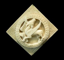 We also find an Aramian (photo No. 5) and a Hittite (photo No. 6) Lamassu, the idea also spread to the civilizations of Asia, such as the Tamil (photo No. 7) and of the same idea came the "Gyuki" legendary Japanese character found in the famous "Mitsuri" carnivals, even the Romans used the symbol of a bull with a man’s head on their coins (photo No. 8 - a coin from Palermo - southern Italy, dating back to the fourth century B.C.), and paintings were found about the Egyptian Sphinx, who fought and trampled on Pharaoh Thutmosis’s enemies (photo No. 9) as well as the Sphinx still guarding the Giza pyramids, the graves and treasures of the pharaohs (photo No. 10), then there is the idea of a "guardian angel" which was established in the church, by the philosopher Dionysius the Areopagite <6>, derived from the idea of "God’s protection" of selected persons to guide people and those are often the saints, The idea of a "guardian angel" spread to the religious art, such as the religious icons in the Russian Orthodox Church (photo No. 11), it also went beyond that to embrace elements of the Lamassu as symbols for the four Evangelist Apostles (Matthew, Mark, Luke, John ), as seen in Greek icons (photo No. 12 notice the head of every saint), the same goes for the Coptic Church (photo No. 13) and even within the Roman Catholic Church, whereby that is clear in the biography of the four evangelists which was given by Pope Gregorius to St. Augustine in 587 A.D., where we find pictures of Luke and Mark, and every saint is protected by a symbol (the eagle for Mark, the bull for Luke and a human for Matthew) (Photos No. 14, 15, 16) <7> We also notice the same winged bull (a symbol for Luke) sculpted clearly in ivory, from the twelfth century A.D. (photo No. 17) <8> – and another icon of 820 A.D. (Carolingian European art) - (photo No. 18)