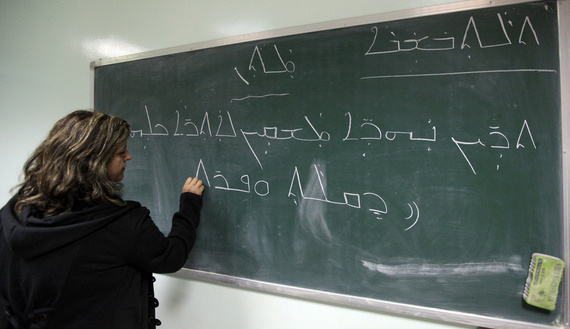 A teacher writes on the blackboard during a Syriac language class in Baghdad, Nov. 20, 2012. (Photo by REUTERS/Saad Shalash)