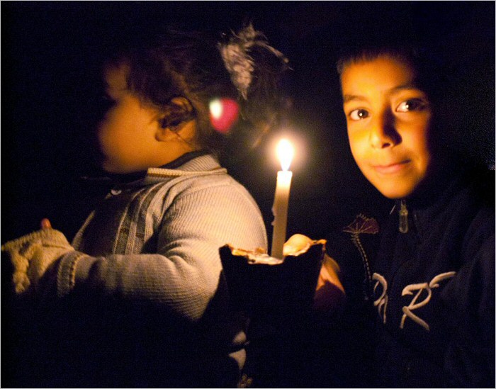 This January 2010 photo released by the Iraqi Refugee Assistance Project shows a young boy, one of nine children belonging to a single mother fleeing an abusive situation in Amman, Jordan. The family used only candlelight since they could not afford electricity, and IRAP helped the family resettle to upstate New York in 2010. The group reports it has helped resettle more than 400 Iraqi refugees in the United States, Canada, Australia, Germany, Ireland and Sweden. (AP Photo/Iraqi Refugee Assistance Project, Susannah Stevens)
