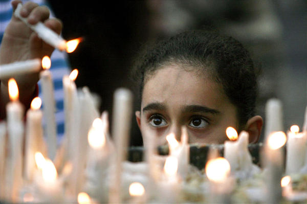 An Iraqi girl lights a candle during Palm Sunday services at the al-Najat Syrian Orthodox Church in Baghdad, Iraq in 2005. Photo: Associated Press (AP)
