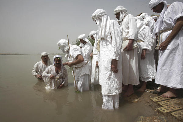 Christians — and related religions such as the Sabaean Mandaeans shown performing baptisms here in the Tigris River — face persecution in Iraq. Photo: Associated Press (AP)