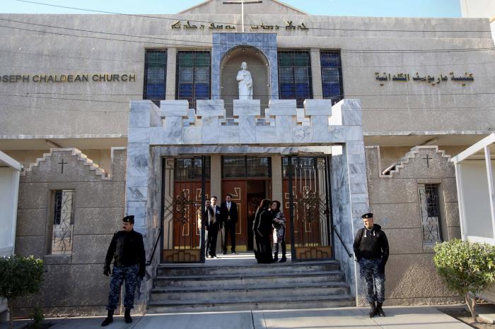 Car bomb goes off near church after service after explosions at outdoor market in Christian areaIraq's Christians celebrated Christmas behind blast walls and barbed wire as at least 37 people were killed in bomb attacks in Christian areas, some by a car bomb near a church after a service. Earlier, two bombs ripped through a nearby outdoor market simultaneously in the Christian section of Athorien, killing 11 people and wounding 21, an officer said. The Iraq-based leader of the Chaldean Catholic church, Louis Sako, said the parked car bomb had exploded after a Christmas mass in the capital's southern Dora neighbourhood, killing at least 26 people and wounding 38. He said none of the worshippers had been hurt, and he did not believe the church was the target. There was no immediate claim of responsibility for the attacks, but Iraq's dwindling Christian community, which is estimated to number about 400,000 to 600,000 people, has often been targeted by al-Qaida and other insurgents who see the Christians as heretics. Other targets include civilians in restaurants, cafes or crowded public areas, as well as Shias and members of the security forces, attacked in an attempt to undermine confidence in the Shia-led government and stir up Iraq's already simmering sectarian tensions. A medical official confirmed the casualty figures. Both officials spoke on condition of anonymity because they were not authorised to talk to the media. Wednesday's bombings came amid a massive military operation in Iraq's western desert as authorities try to hunt down insurgents who have stepped up attacks across Iraq in the past months, sending violence to levels not seen since 2008. The Christmas Day attacks brought the total number of people killed this month in Iraq to 441. According to UN estimates, more than 8,000 have been killed this year. On Christmas Eve, the Mar Yousif Syriac Catholic church in western Baghdad looked like a walled fortress. Soldiers and police ran bomb detectors across cars, searched trunks and bags and patted down visitors before the evening ceremony. Inside, the red-confetti-strewn Christmas tree, bright blue-and-white tile mosaic and strings of Santa-Claus-themed bunting contrasted with drab streets strewn with concrete blocks and barbed wire outside. But pews that would have overflowed with worshippers a few years ago were barely two-thirds full – a reflection of the fact that the Christian community has fallen from about 1.5 million before the US-led invasion to about half that. "The future is very critical because of immigration," said the human rights activist William Warda before Tuesday night's service, estimating that 10 to 20 Christians were still leaving the country each day. "Many Christians … are fleeing from the country because of this issue, because there is no sign of a bright future."