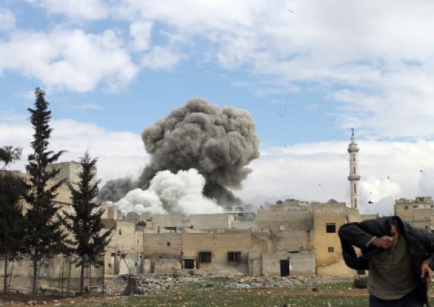 A man runs for cover following a reported bombing in the northern city of Aleppo. Picture: Getty Images