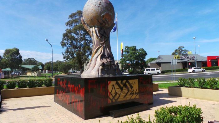The Assyrian genocide monument, a memorial to the nearly 750,000 Assyrians murdered by Turkey’s Ottoman Government during World War I was discovered this morning vandalized at Bonnyrigg Park, Bonnyrigg. The vandals painted Nazi swastika marks on the monument and plaque, and spray painted the words “F*** Armenians, Assyrians and Jews” on the left and front sides of the base of the monument. This is the fourth time that this monument has been desecrated in such an offensive manner.