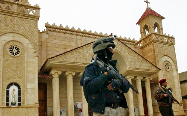 Iraqi security officers protecting churches in Baghdad.