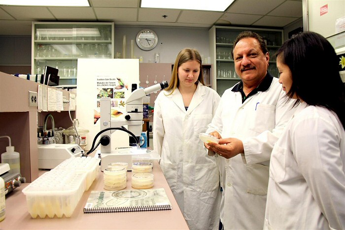 From left to right: Co-op student Kayla Skrocki, research scientist Dr. Simon Shamoun and research technician Grace Sumampong