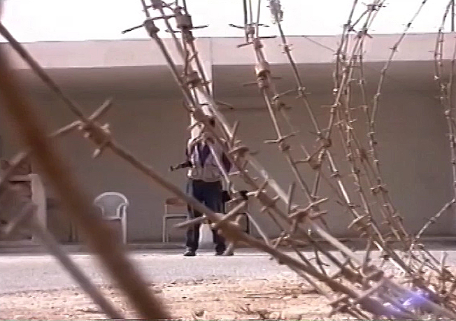 Un miliciano custodia la puerta principal del cuartel que Zowaa posee en Bagdad. / Autor de la fotografía: Ferran Barber